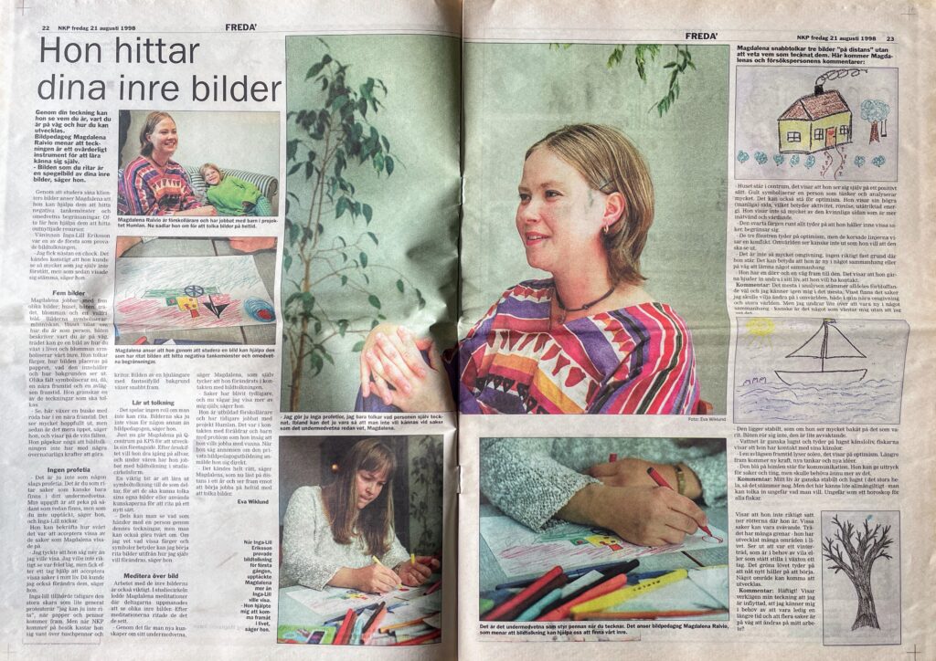 Jag kom först i kontakt med bildtolkning i tjugofemårsåldern. Det var en tid när mycket i mitt liv var i förändring, och jag sökte efter nya sätt att förstå mig själv. Jag gick en drygt ettårig utbildning till bildtolkningspedagog och det förändrade verkligen mitt liv till det bättre.